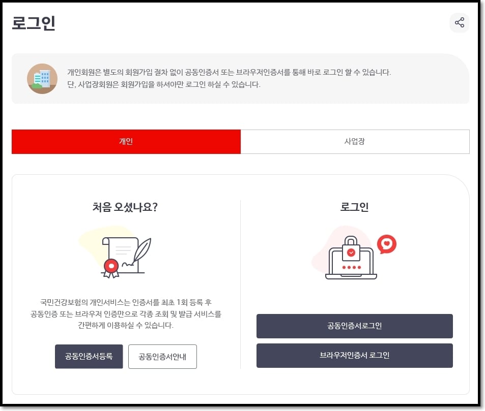 이렇게 해서 건강검진 대상자 조회방법에 대해 알아보았습니다. 여러분이 준비할 것은 공인인증서 또는 브라우저 인증서를 준비하는 것입니다.