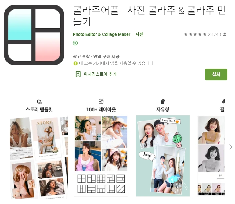 세 번째 소개할 어플은 콜라주 메이커 어플입니다. 아래는 콜라주 메이커 어플에 대한 자세한 설명이니 참고하세요~