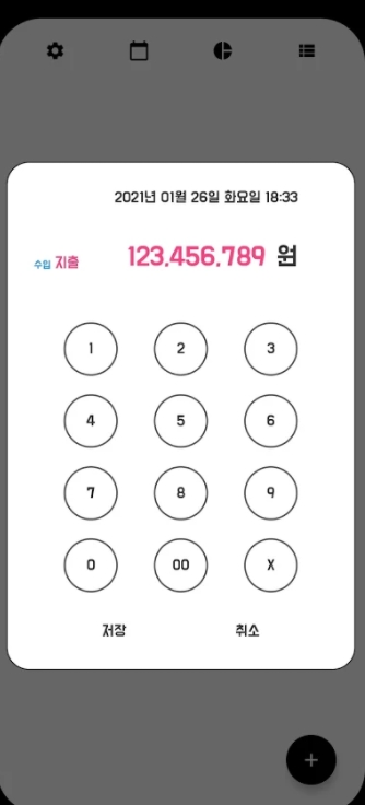 수입, 지출 입력을 자산과 연결하는 복식부기를 지원하는 가계부입니다.