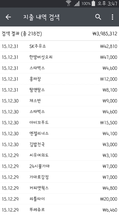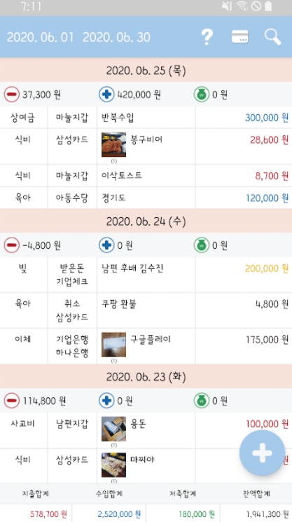 ▶ 카드 사용이 한눈에 보이니 절제하게 되네요. 한 달 동안 입출금을 기록하고 얼마만큼의 지출이 어떻게 쓰이는지 매일매일 기록하는 게 습관이 되니 지출을 줄이려고 노력하게 되네요. 핸드폰 바꾸고 당황했다가 옮기는 방법을 알고 나서 얼마나 좋아했는지 몰라요. 번창하시길 바라요.