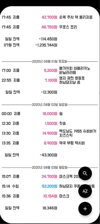 - 리스트 화면으로 내 지출, 수입을 한눈에 볼 수 있어요.