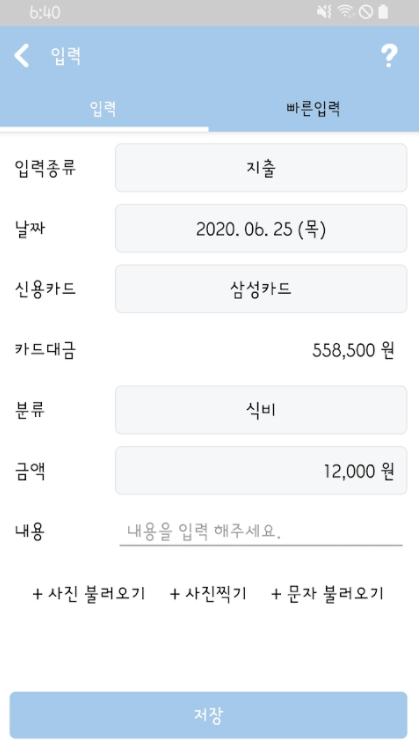 - 지난 문자 입력 및 문자 자동화 기능으로 내역을 입력할 수 있습니다.