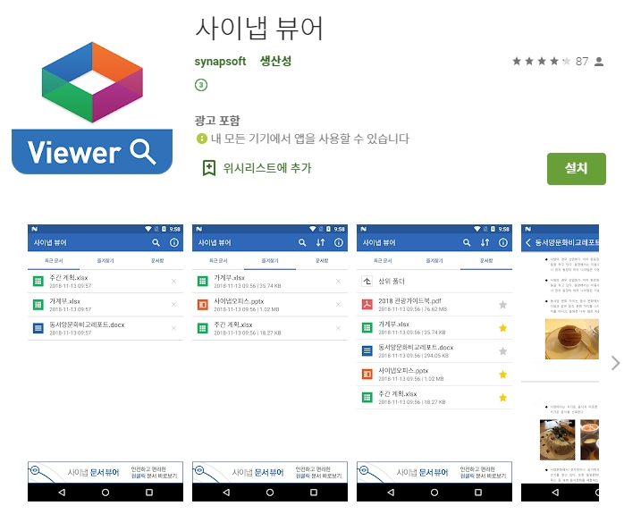 사이냅 뷰어 (광고 없는 오피스 뷰어) 어플을 만들어 주신 개발자님 감사합니다~