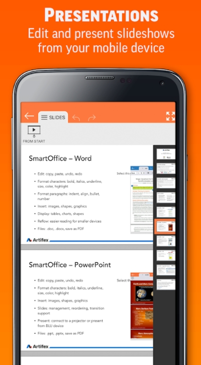 SmartOffice는 오늘날의 모바일 세상의 요구를 충족하도록 설계된 직관적이고 사용하기 쉬운 문서 편집 응용 프로그램입니다. 모바일 장치에서 직접 MS Office 문서를 보고, 편집하고, 작성하고, 발표하고 공유하십시오.