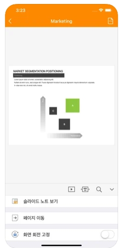 - PPT 내 슬라이드 노트/슬라이드 쇼 보기 : 슬라이드 노트와 슬라이드 쇼를 모바일에서도 동일하게 볼 수 있습니다.