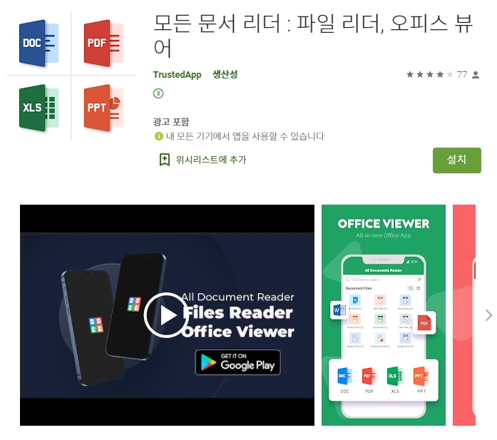 3. 오피스 리더 (워드, 엑셀, 파워포인트 및 PDF 뷰어) 어플