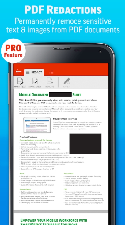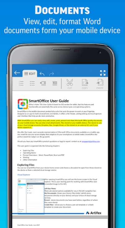 SmartOffice는 오늘날의 모바일 세상의 요구를 충족하도록 설계된 직관적이고 사용하기 쉬운 문서 편집 응용 프로그램입니다. 모바일 장치에서 직접 MS Office 문서를 보고, 편집하고, 작성하고, 발표하고 공유하십시오.