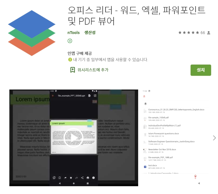 3. 오피스 리더 (워드, 엑셀, 파워포인트 및 PDF 뷰어) 어플