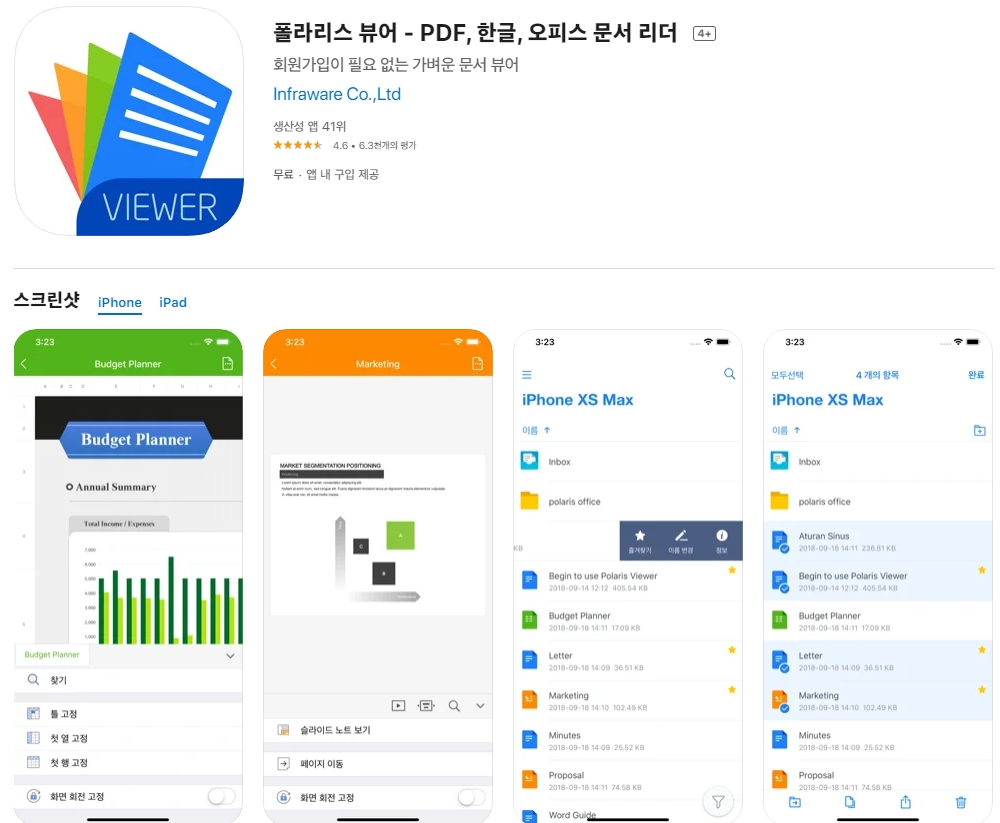 첫 번째 소개할 어플은 폴라리스 뷰어 (PDF, 한글, 오피스 문서 리더) 어플입니다. 아이폰 사용자와 안드로이드폰 사용자 모두 이용하실 수가 있는 어플입니다. 한글파일은 물론이고 엑셀 파워포인트 워드 pdf 파일도 볼 수가 있는 어플이죠~ tts 기능도 탑재가 되어 있는 만능 어플이랍니다~ 아래는 폴라리스 뷰어 (PDF, 한글, 오피스 문서 리더) 어플에 대한 자세한 설명이니 참고하세요~