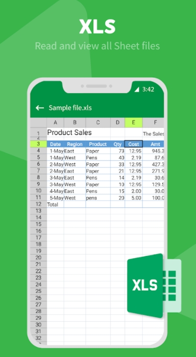 ★ XLS, XLSX 파일 리더 스프레드 시트 리더.