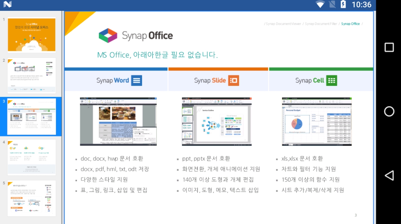 - 국내 유일의 네이버 오피스 문서 포맷 지원(ndoc, nxls, nppt)