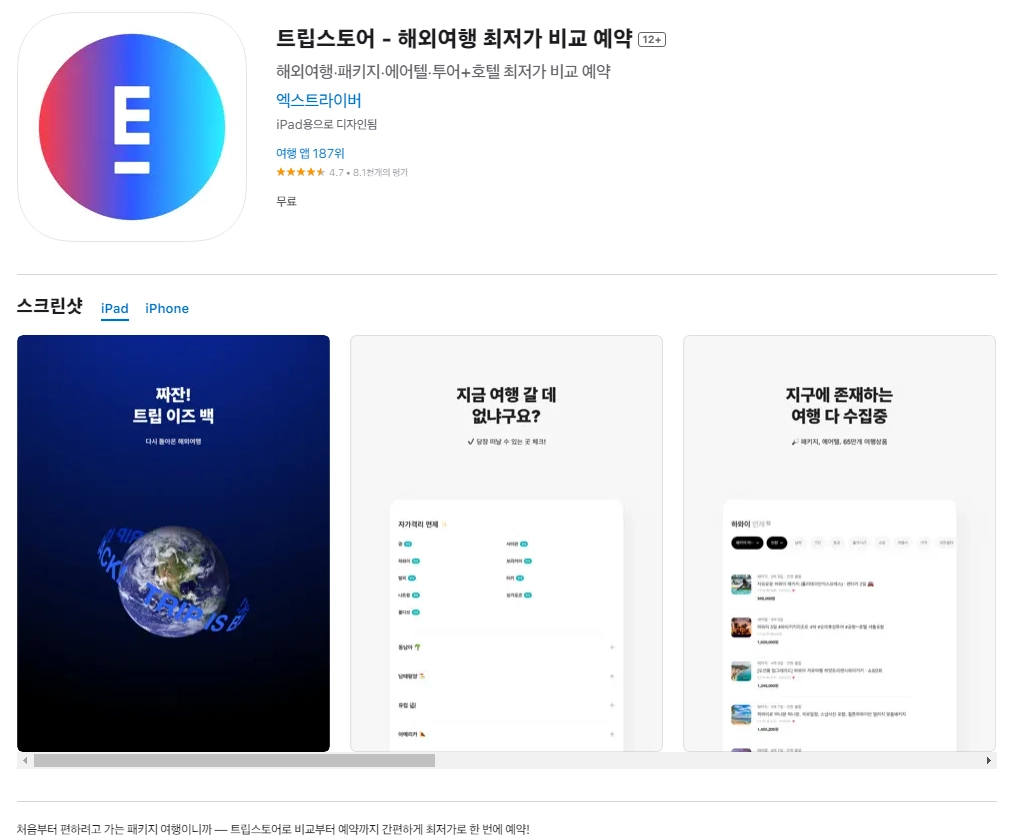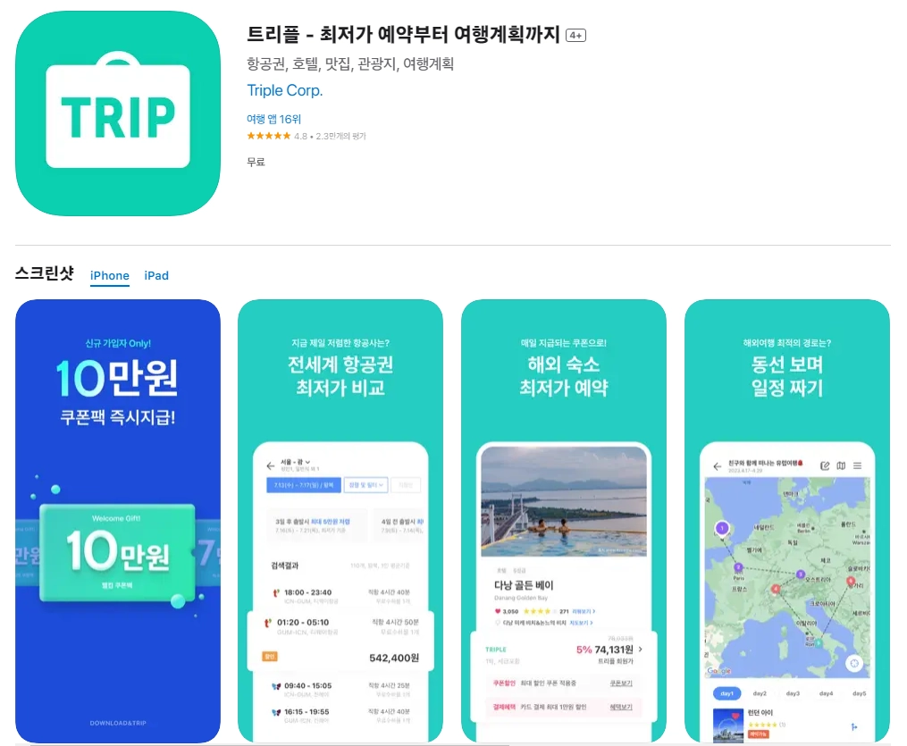 1) 아이폰 트립스토어 - 해외여행 최저가 비교 예약 12+ 어플 소개