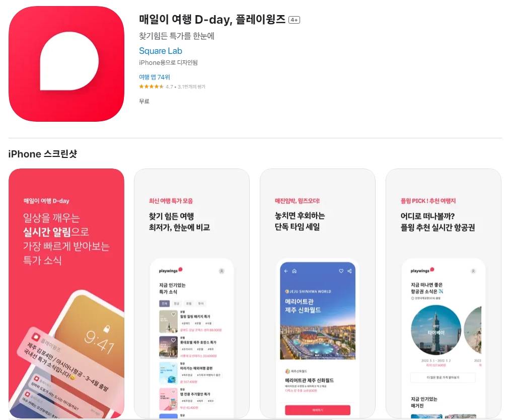 2) 아이폰 매일이 여행 D-day, 플레이윙즈 4+ 어플 다운로드 / 스크린샷